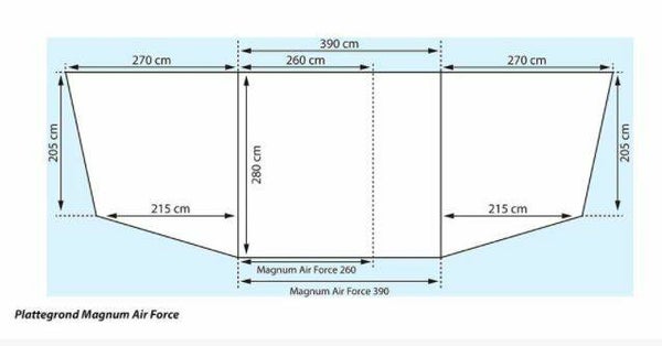 Deze Magnum Air Force 390 is door het gebruik van Klimtex 4000 mm polyester nog lichter van gewicht dan de Air All Season voortent.